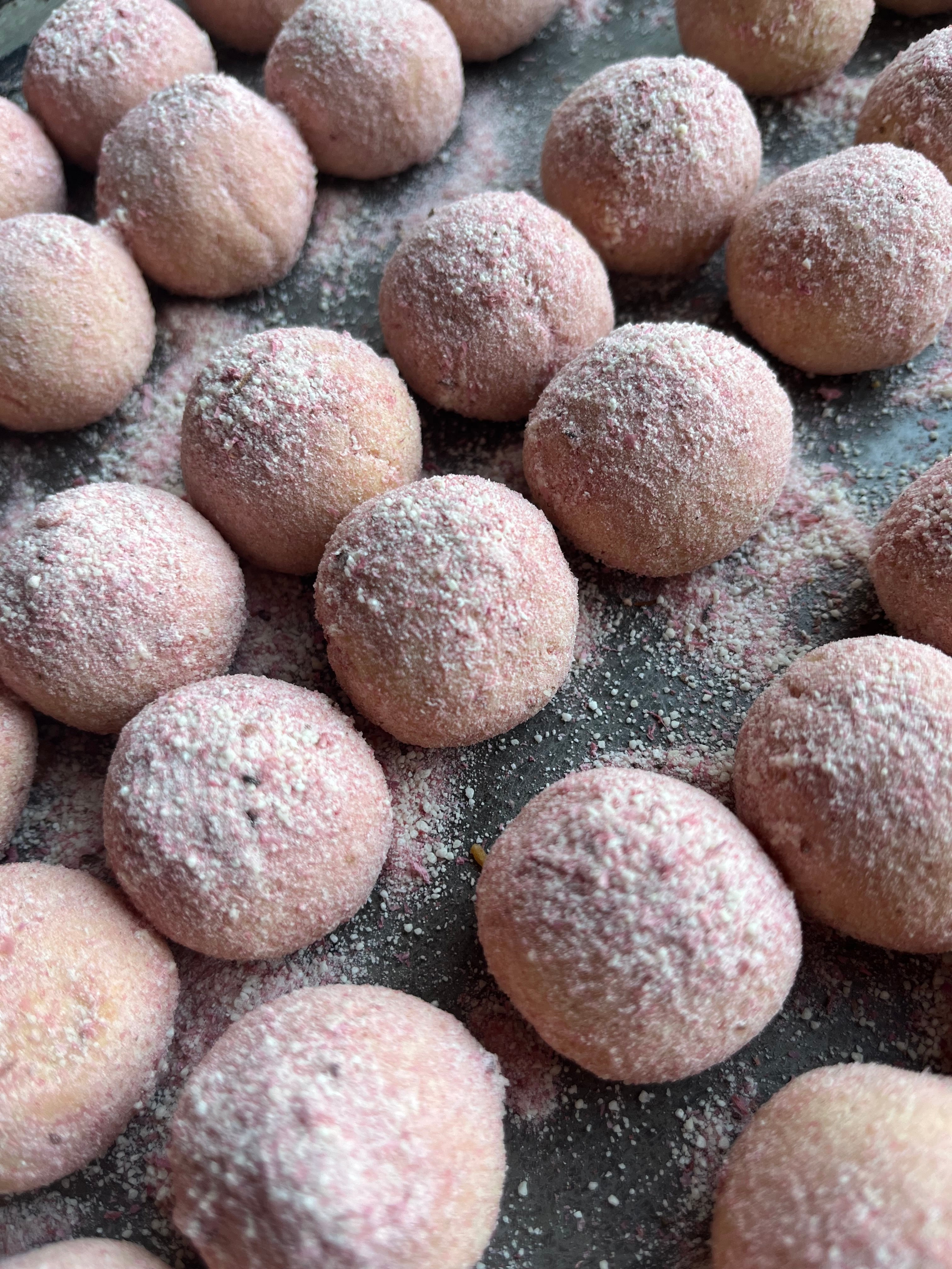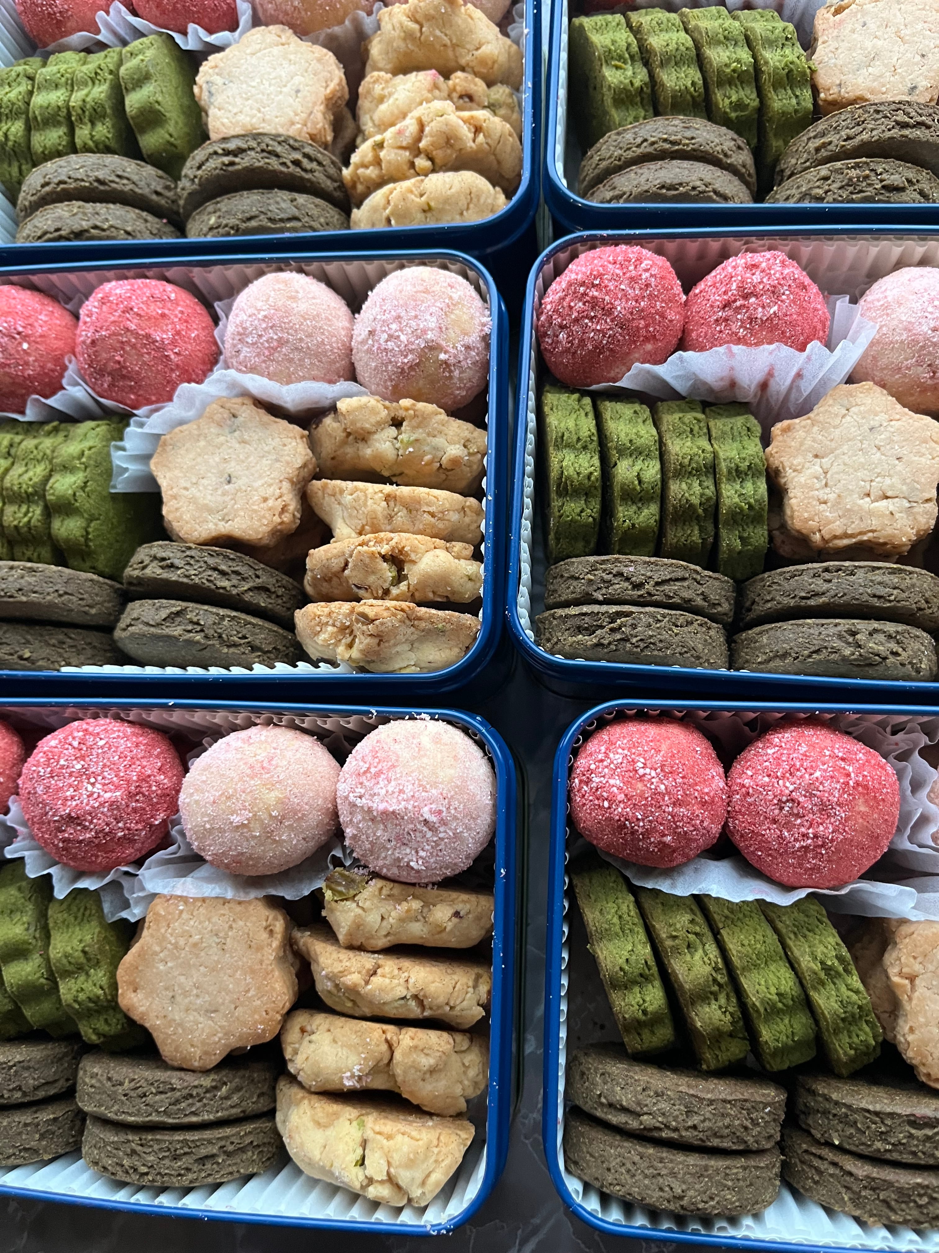 米粉、アーモンドパウダー、ホワイトソルガム、有機玄米粉、きび砂糖、甜菜糖、メープルシロップ、有機ココナッツオイル、太白ごま油、片栗粉、有機コーンスターチ、ココアパウダー、有機チョコレート、有機豆乳、豆乳ヨーグルト、有機タピオカ粉、ココナッツクリーム、大豆粉、有機バニラペースト、ラズベリーパウダー、ピスタチオ、桜パウダー、桜葉、抹茶、ほうじ茶、塩/アルミニウムフリーBP